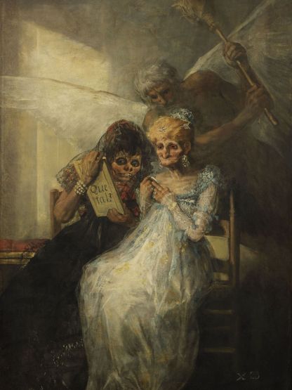Francisco de Goya va néixer el 30 de març de 1746 a Fuendetodos (Saragossa) i va morir el 16 d’abril de 1828 a Bordeus. Tot i que en els darrers anys de vida va representar la decrepitud que ell mateix patia (estava malalt i completament sord), en tota la seva obra podem veure com mostrava la vellesa sense cap mena d'idealització. En les catorze obres que us hem sel·leccionat (entre els quals hi ha gravats, dibuixos i pintures) Goya mostra la decadència i la deformació grotesca del cos, però també la lucidesa d'aquesta etapa. En peces com Hasta la muerte o Las viejas introdueix una mirada irònica i cruel sobre l’autoengany i la persistència de la vanitat més enllà del temps. La vellesa no la representa només com un deteriorament, sinó com una negació d’aquest deteriorament. Obres com No puede ya con los 98 años o Edad con desgracias mostren cossos vençuts, incapaços de sostenir-se, allunyats de qualsevol dignitat clàssica. Aquesta visió culmina en imatges com Viejos comiendo sopa o Dos viejos, on la vellesa es presenta com una existència límit, marcada per la dependència, el silenci i una proximitat inquietant amb la mort. A Goya a su médico Arrieta, el pintor retrata el moment en què, malalt, en mans del metge, va estar a punt de morir. Però no tot és decrepitud: al dibuix Aún aprendo, una figura vella i fràgil avança amb dificultat mentre diu que encara vol continuar aprenent.