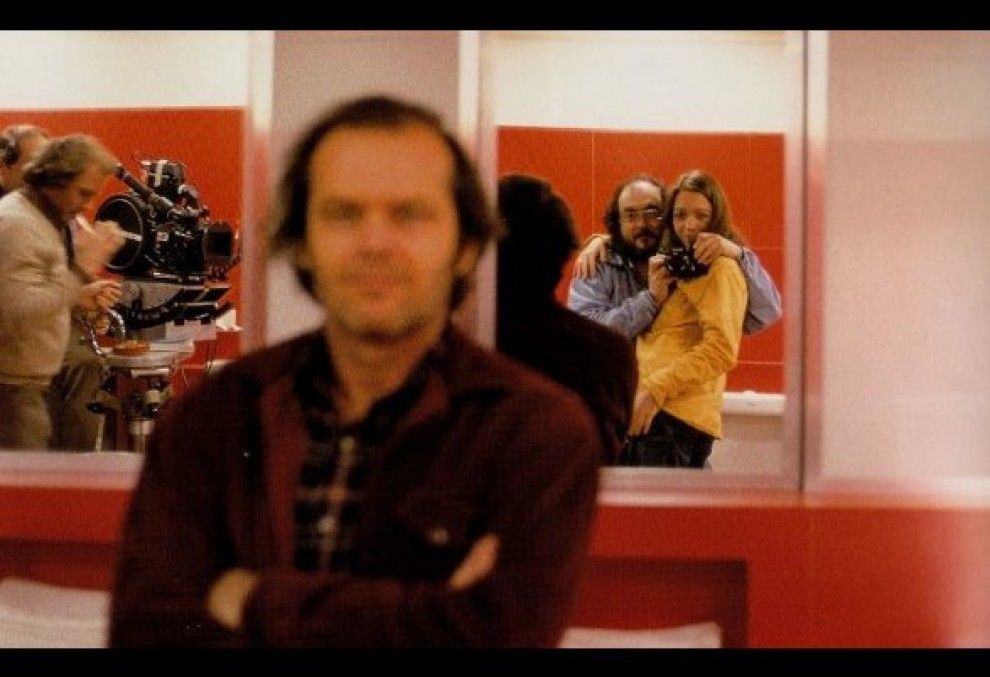 Stanley Kubrick retratant-se en un mirall amb la seva filla i Jack Nicholson. Foto: Stanley Kubrick