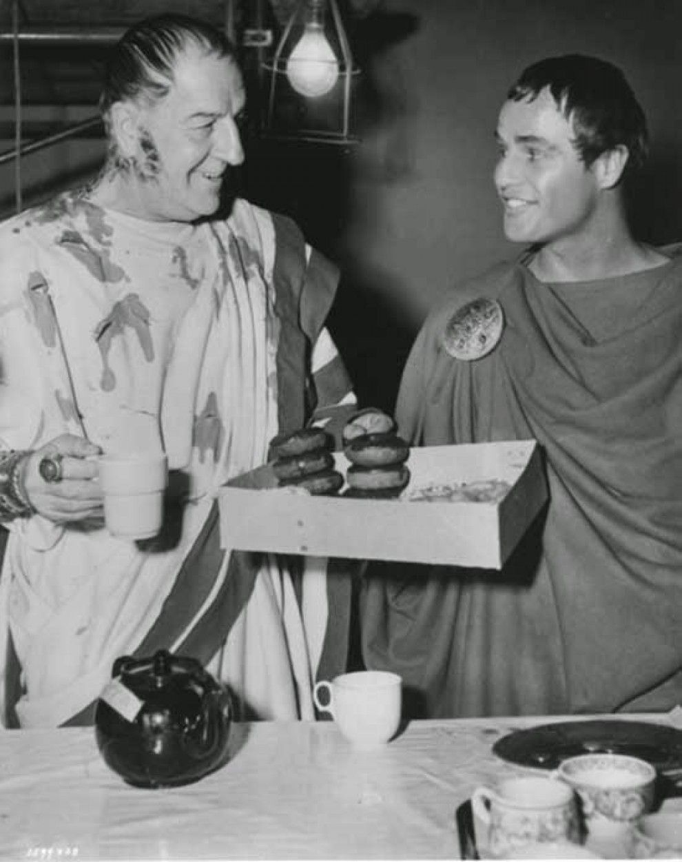 Louis Calhern i Marlon Brando es mengen uns dònuts. Foto: Metro Goldwyn Mayer