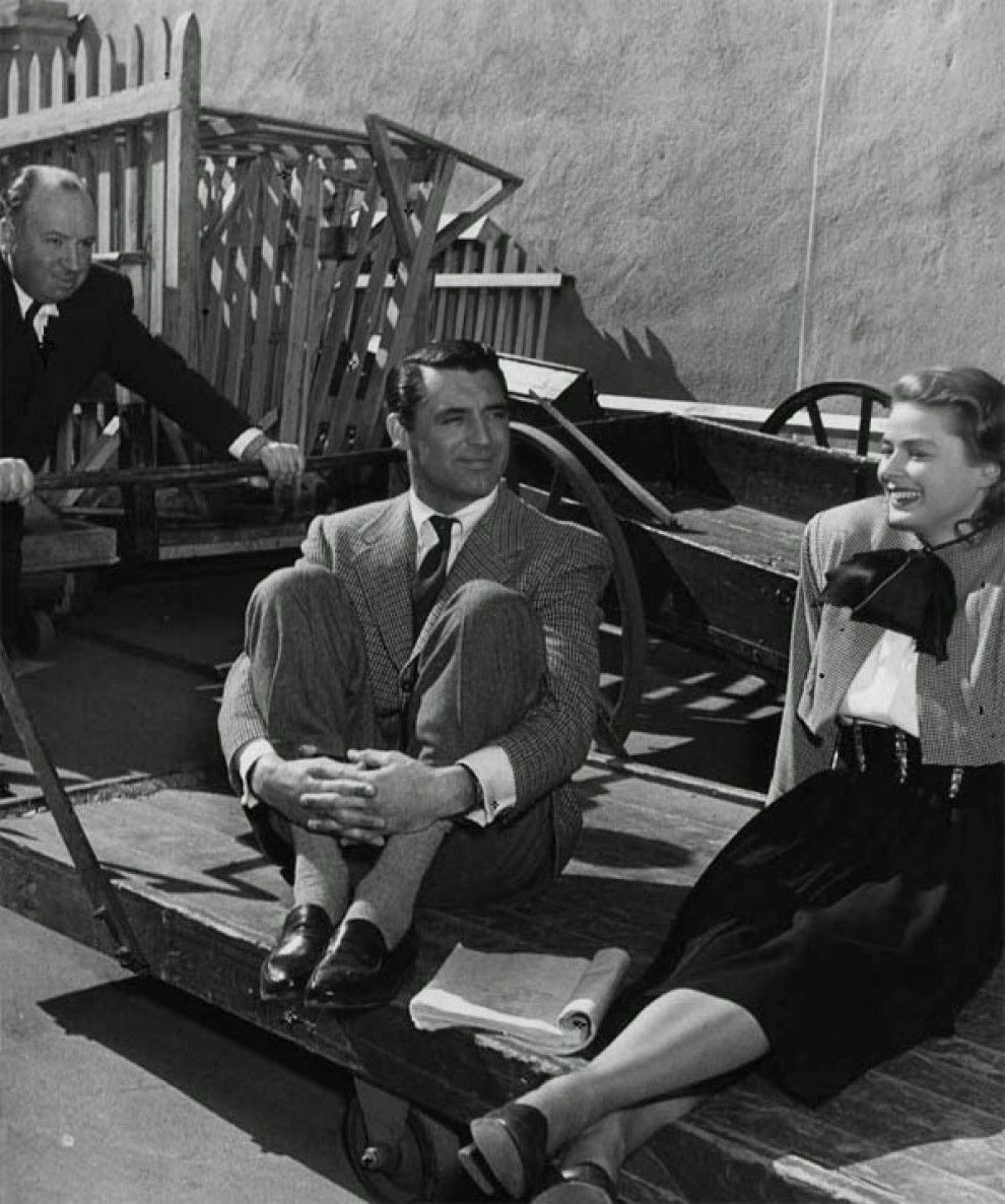 Alfred Hitchcock porta en una carreta Cary Grant i Ingrid Bergman. Foto: Selznick Studios