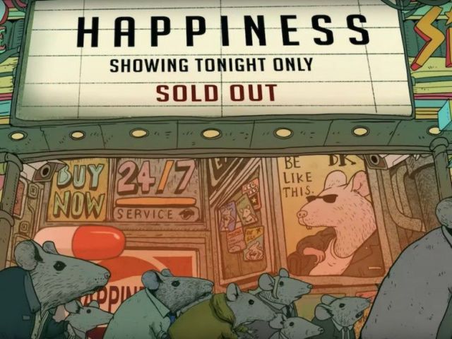 Seguir el ramat per comprar en massa. Aprofitar aquella oferta, encara que no sigui gens necessària per viure. Empatxar-se de frivolitats. L'animació Happiness, de Steve Cutts, és un retrat tristament real de com s'ha pervertit el significat de la felicitat.