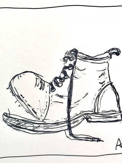 I llavors, la reflexió. Que bé que no he decidit comprar-ne unes de noves, que bé que existeix el sabater i el seu mon paral·lel de silenci i pausa, quina meravella arreglar el que ja tenim i, amb la feina que donem, fer el sou dels treballadors i no sumar diners als comptes bancaris dels extremadament rics que exploten els extremadament pobres perquè la societat de consum llenci i substitueixi en comptes de cuidar i apedaçar.
