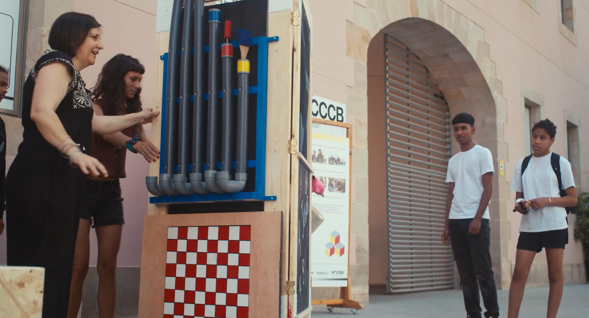 Durant el curs escolar 2022-2023, el departament de Mediació del CCCB va proposar a tres escoles i instituts del Raval formar part d'un projecte educatiu i comunitari que imaginés espais de joc alternatius per al seu barri. De la mà d'Impulsem i Voltes, van tirar endavant una iniciativa que va involucrar 175 estudiants, gairebé tots els centres educatius del Raval i l'espai públic que els rodeja.
