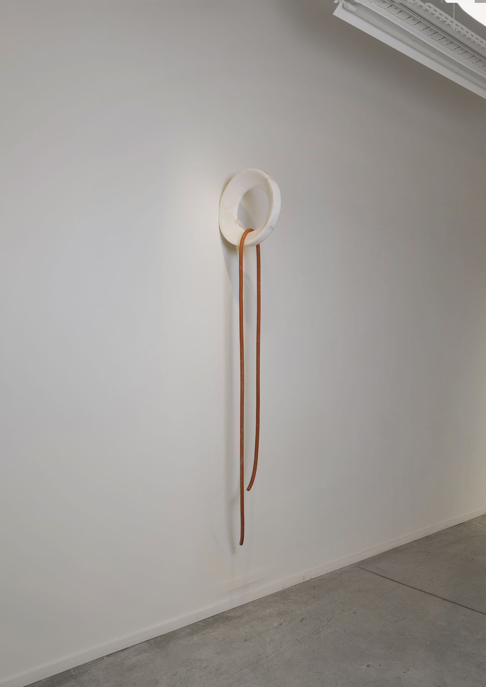 L'escultura és un forat IV. 2024. Alabastre i goma. 250 x 45 x 6,6 cm.