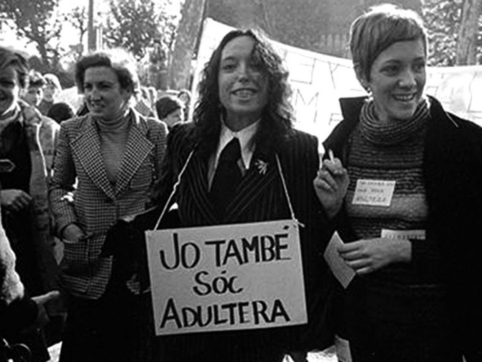 Una de les manifestacions més rellevants del feminisme català dels setanta va ser la del 12 de novembre de 1976, davant el palau de Justícia de Barcelona, en suport a María Ángeles Muñoz. Inculpada d’adulteri, un jutge li va retirar la custòdia de la seva filla gran per ser adúltera. Hi ha unes fotos molt famoses de Manuel Armengol on les manifestants (Montserrat Roig i Maruja Torres) exhibeixen la pancarta “Jo també soc adúltera”. La pressió social va ajudar a trobar una solució al conflicte jurídic. Finalment, Muñoz i l’exmarit van signar un acord que implicava que la mare mantenia la custòdia de la nena. Va representar una victòria parcial pel feminisme de l’època; recordem que fins al 26 de març de 1978 no es van derogar les lleis que consideraven l’adulteri un delicte.