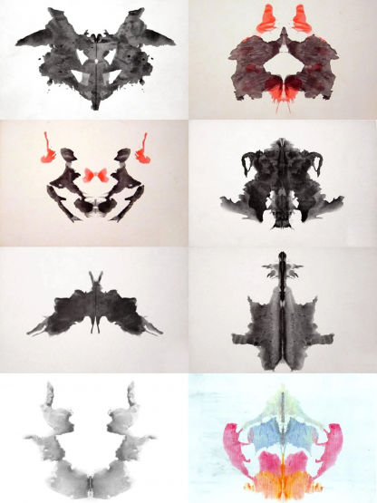 I sí, les va fer ell, les taques. No només va dissenyar el test, sinó que va crear les taques. D’entrada en va fer més de quaranta, però les va anar retocant i seleccionant fins a quedar-se’n només deu. Va ser una feina molt meticulosa: no eren accidents simètrics, sinó composicions pensades per provocar interpretacions determinades. N’hi ha que suggereixen formes animals, d’altres, moviment i contacte, i n’hi ha que busquen reaccions més emocionals o simbòliques. ¿I la simetria? Totalment buscada per provocar l’inconscient, ja que s’ha observat que les formes simètriques tendeixen a activar mecanismes perceptius més arrelats, més primaris. La simetria és llaminera, capta l’atenció, genera una sensació d’ordre i estructura i facilita que el cervell hi trobi imatges familiars.