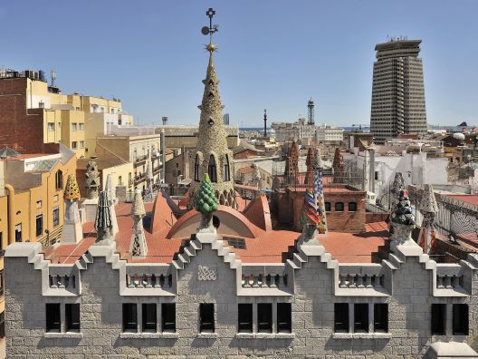 Situat al cor de Barcelona, a tocar de la Rambla, el Palau va ser concebut com a residència de la família Güell-López, i hi destaca l’ús de materials nobles i el treball acurat dels millors artesans de l’època: forjadors, ebenistes, ceramistes, marbristes i vitrallers. La planta noble gira al voltant del saló central, sota una cúpula que evoca un cel estrellat, on la música adquireix protagonisme gràcies a l’orgue històric. Al terrat, les xemeneies escultòriques, totes diferents, recobertes de materials diversos —i, en bona part, decorades amb trencadís—, són una mostra de la imaginació i l’originalitat de Gaudí.